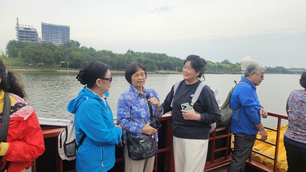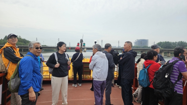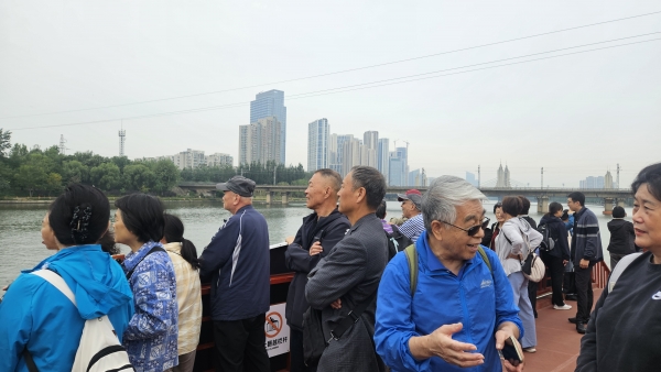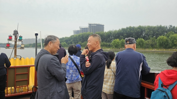 大家愉快地踏上了这次秋游之旅,首站抵达大运河景区乘船游览,水面上碧波荡漾,沿途的风景仿佛一幅流动的历史画卷。退休教职工们在甲板上欣赏运河两岸的美景,拍照留念,脸上洋溢着愉快的笑容。