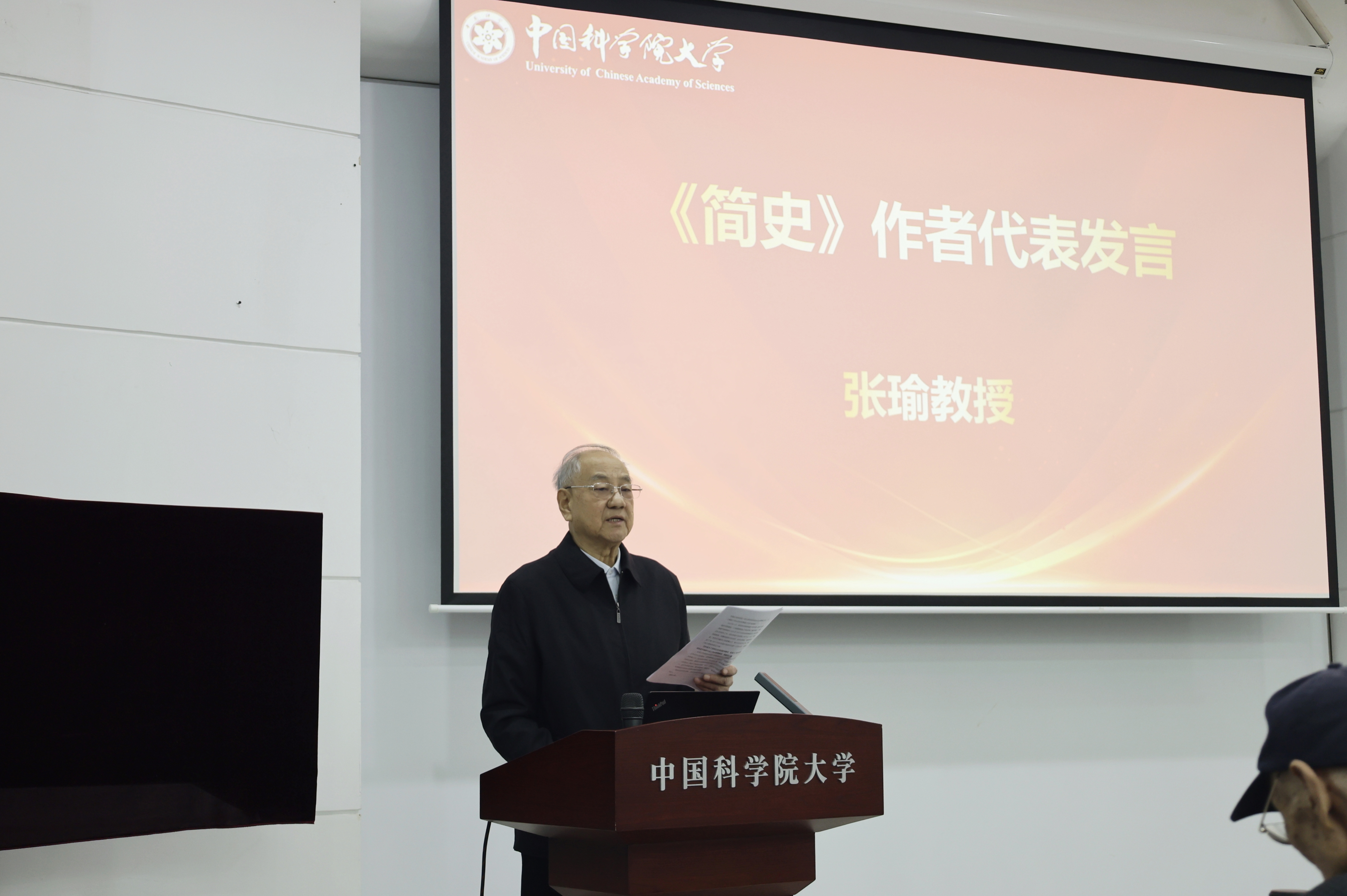 牛晓莉副校长在仪式上发表了讲话。她首先代表国科大向所有为此书付出心血的老领导、老同志表示崇高的敬意和热烈的祝贺。她强调,这两册书的出版意义非凡,记录了学院二十五年来的奋斗历程和辉煌成就,是一项功在学校、利在长远的“抢救性”工程。她回顾了学院从1978年建校到2003年整合并入中国科学院研究生院的艰辛历程,高度赞扬了历任院长和党委书记的领导力和全院教职工的奋斗精神,指出这段历史不仅是一段记忆,更是一种精神和一份传承。也期待老领导、老同志继续关心和支持学校的各项工作,特别是在迎接50周年校庆的过程中,发挥独特优势,积极参与校史的进一步挖掘与整理。
