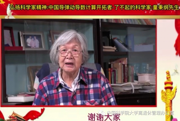 会议首先播放了离退休管理办公室制作的童秉纲先生纪念视频,以及童先生夫人晋晓林老师的讲话视频。92岁高龄的晋老师向与会人员表达了感谢,她说到,童先生一生历尽坎坷,两落三起,国科大原党委书记邓勇教授曾评价童先生“高尚正直、和蔼善良、博学谦逊、严谨务实,宽厚仁慈,律己利人”。