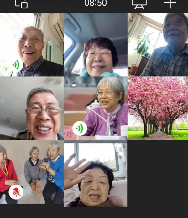 在千里之外的朱世品、邵路路、张静娟、刘国光、戴宗铎,徐淑贞等同志与郭、余二位老师进行了视频,久未见面的老同志们在线上欢聚一堂,穿过万水千山的电波连着跳动的每一颗心,述不完的思念之情,说不完互相祝福叮嘱的话语。七支部书记邵路路向郭、余二位老师转达了七支部全体同志的们满满的牵挂、思念和问候。四支部书记刁汉民同志也微信送来了对郭、余两位老师的问候。