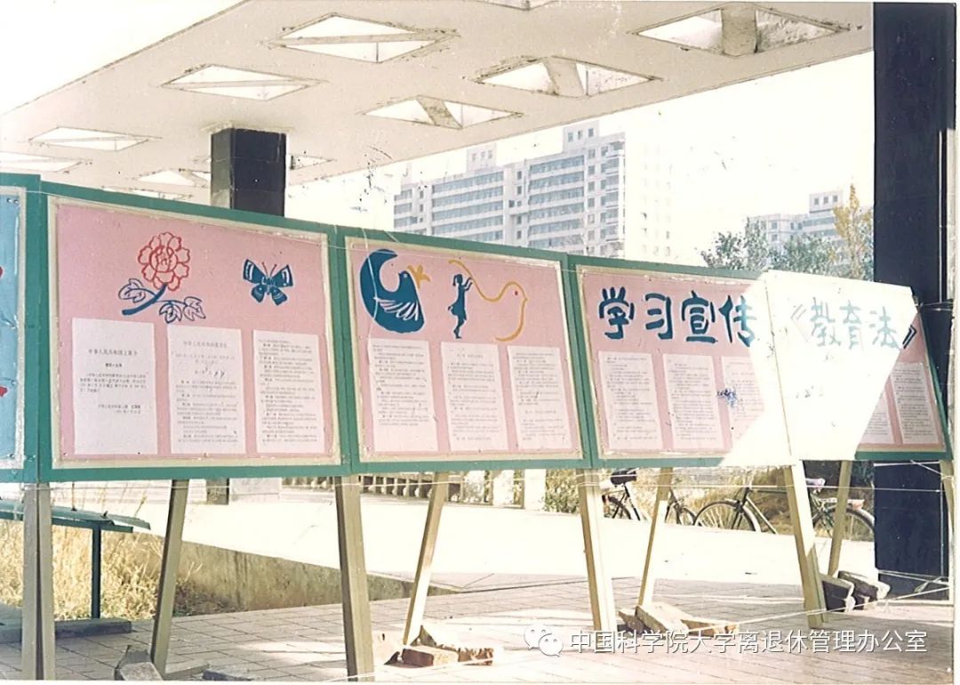 研究生公寓走廊,学习宣传《教育法》展板(1992)