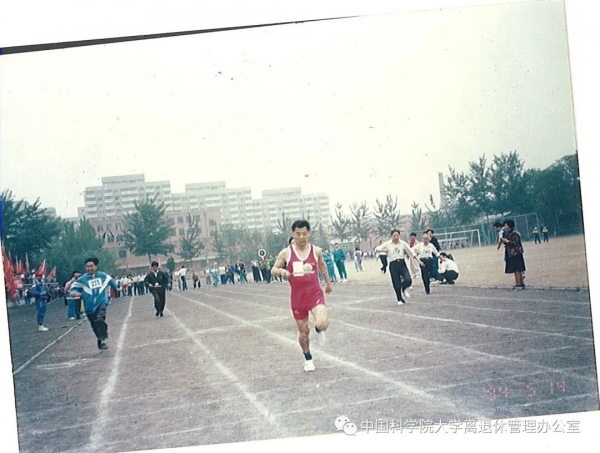 北京市高校图书馆运动会上,程纪原在老年组百米托球跑比赛中获得亚军(1992)