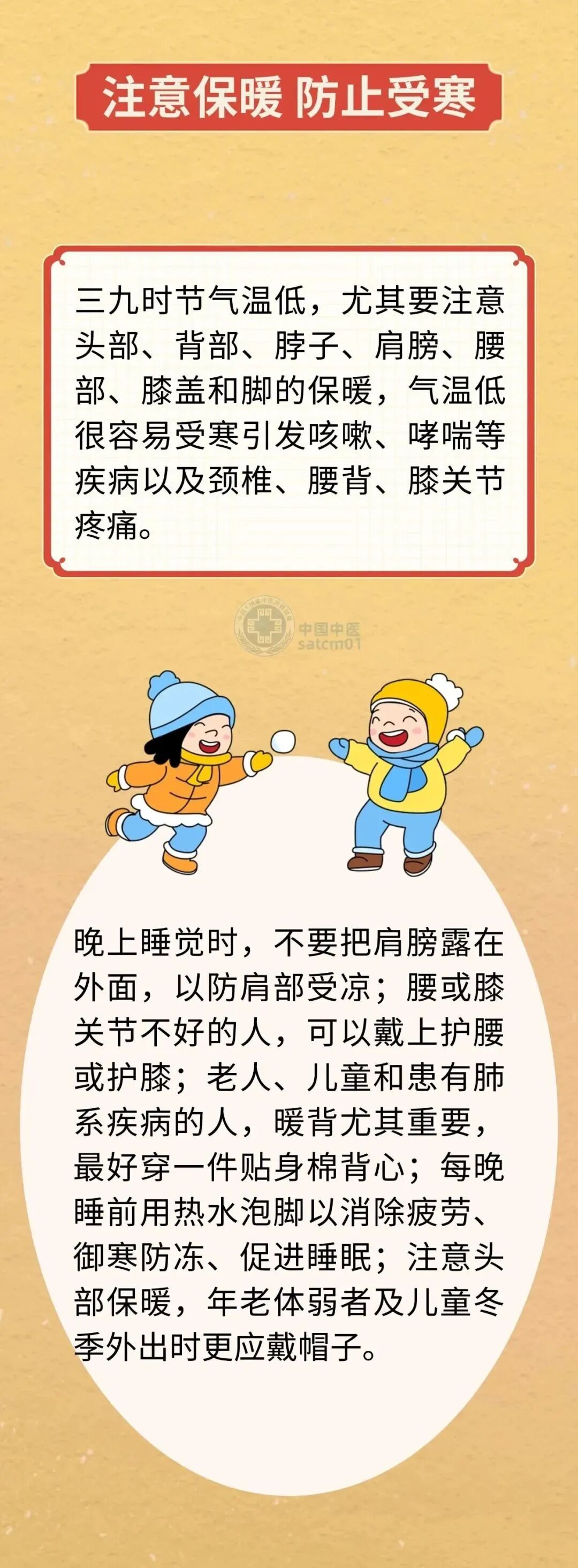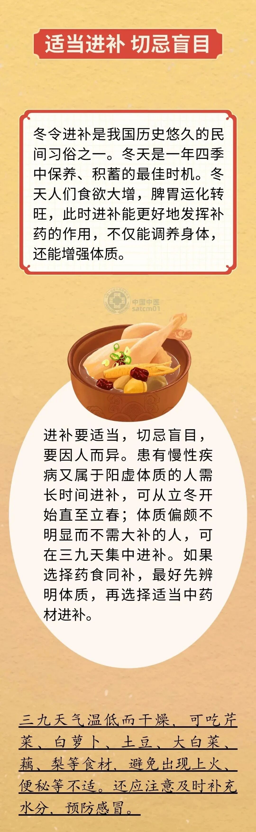 中医理论认为,人与自然界是“天人相应”的一个整体,人体功能的盛衰与自然环境的变化有密切关系。三九时天寒地冻,人体新陈代谢慢,防御疾病的能力下降,正确的养生方式可以调整身体素质,增强体质以抵御寒冬,让来年身体更好。